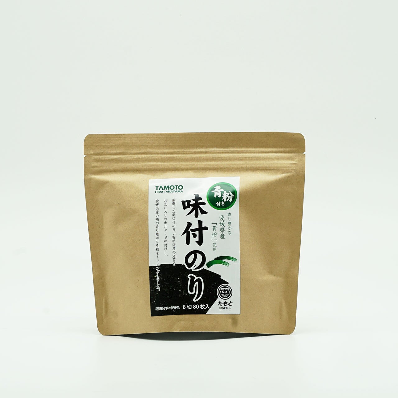 乾のり(国産)、青粉(国産)、醤油、醗酵調味料、食塩、昆布、鰹節、調味料(アミノ酸)、香辛料抽出物*原材料の一部に大豆・小麦を含む